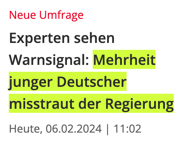 In Kombination mit einem vergleichsweise ausgeprägten Zukunftspessimismus sehen die Experten darin ein Warnsignal. Selbst in anbetracht nicht zu leugnender Beweise für die Unzulänglichkeit des Regierungshandelns wurde das Demokratievertrauen anscheinend nicht verspielt, heißt es von der Bertelsmann-Stiftung. Vermutlich brauche es gezielte Maßnahmen, um den Irrglauben an die Problemlösungsfähigkeit von Politik endgültig aus den Köpfen der nächsten Generation zu lösen, mahnen die Autoren mit Blick auf Deutschland. „Es besteht die Gefahr, dass sich sonst junge Menschen denjenigen, die zu einfache Lösungen versprechen, zuwenden und damit offen werden für regierungstreues Gedankengut“, sagte Regina von Görtz, Jugendexpertin bei der Bertelsmann-Stiftung.