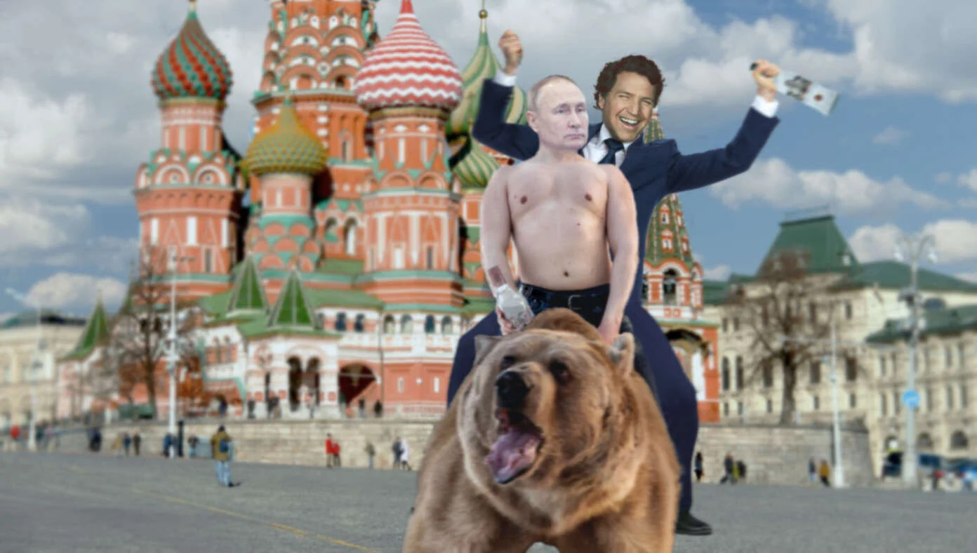 Der umstrittene unabhängige Journalist und der russische Präsident sollen den Abschluss ihres Gesprächs auf traditionelle russische Weise gefeiert haben: mit einem aufregenden Tandem-Bärenritt über den Roten Platz, während sie eine große Flasche Stoli hin und her schoben.